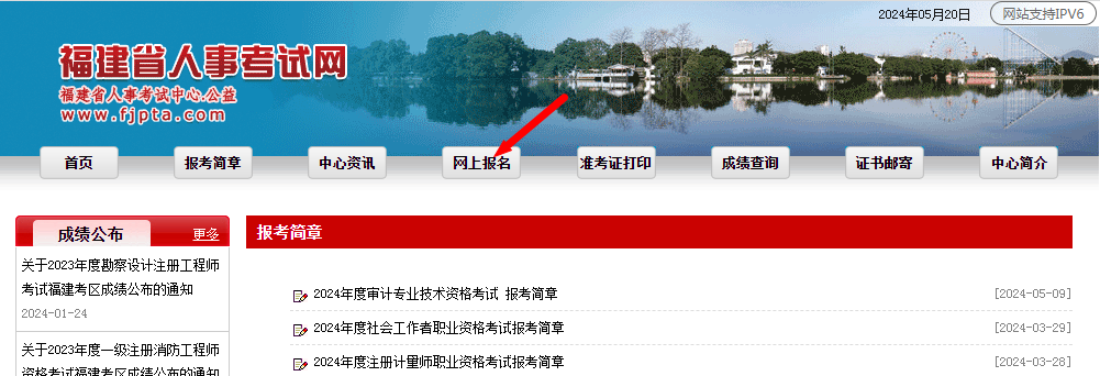 步骤一、登录福建省人事考试网,点击“网上报名”