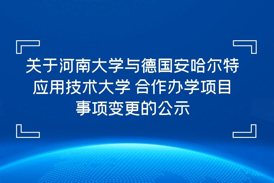 根据中外合作办学项目事项变更的有关要求,现对河南大学与德国安哈尔特应用技术大学合作举办生物工程专业和国际经济与贸易专业本科教育项目的事项变更予以公示1.项目学制:由“5年”变更为“4年”;2.颁发证书:项目学生在河南大学顺利完成培养计划,达到...