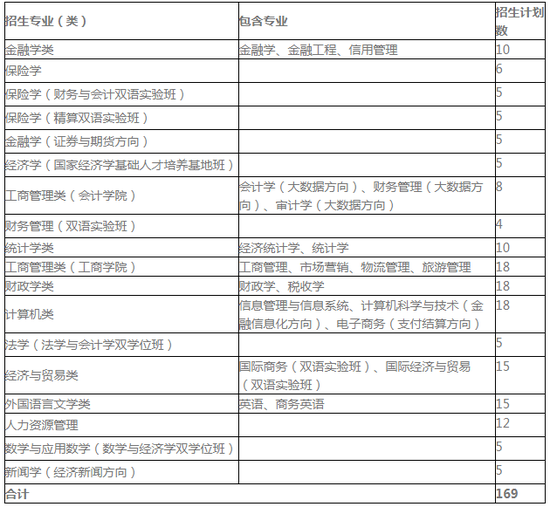 我校2019年自主招生计划数为169人,具体专业及人数见下表: