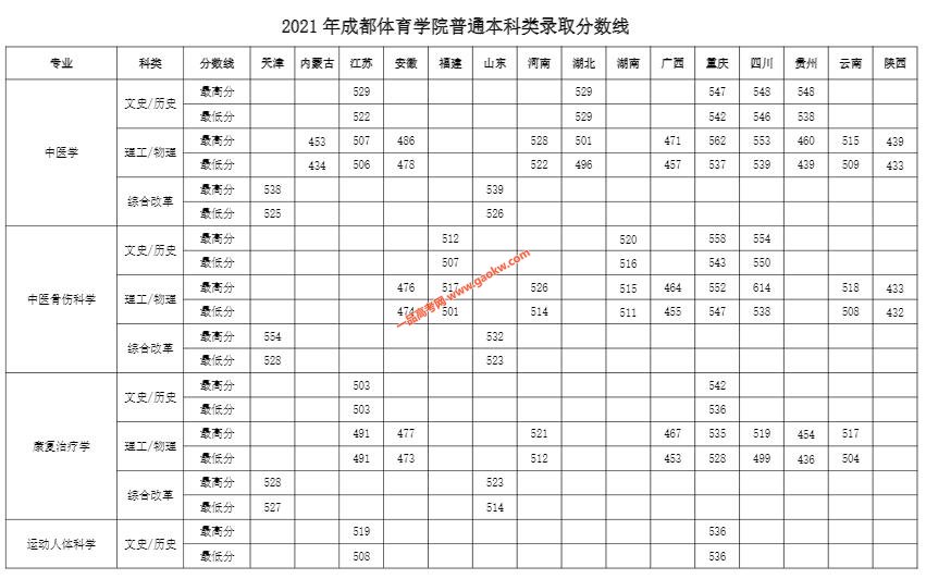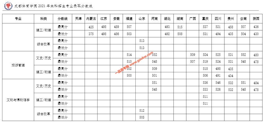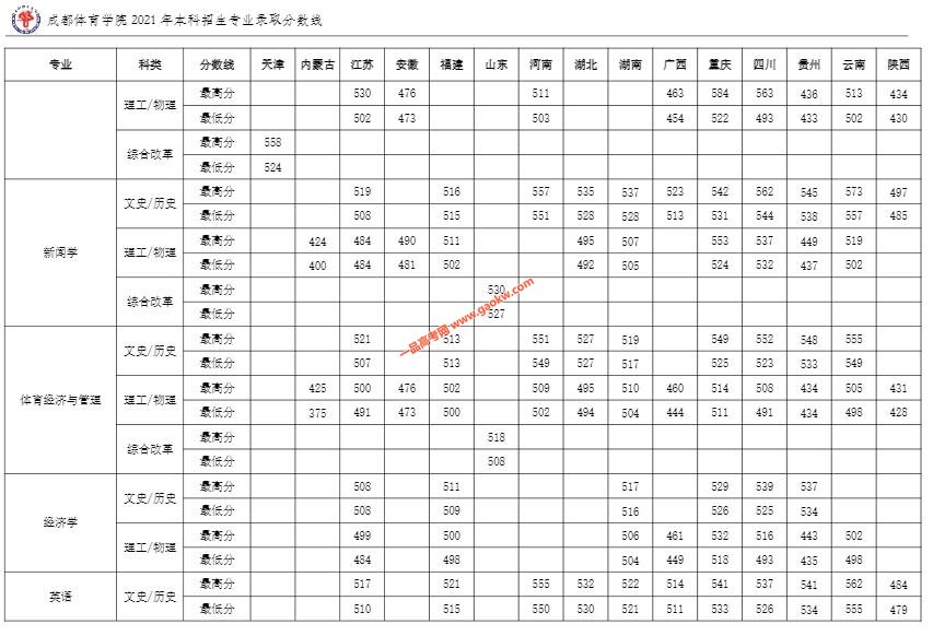 成都体育学院2021年录取分数线(附2017-2021年分数线)