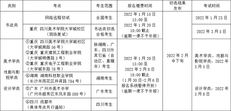 注:报名参加我校校考的考生,只能在美术学类、戏剧与影视学类、设计学类、书法类中选择一类报考,不可兼报。