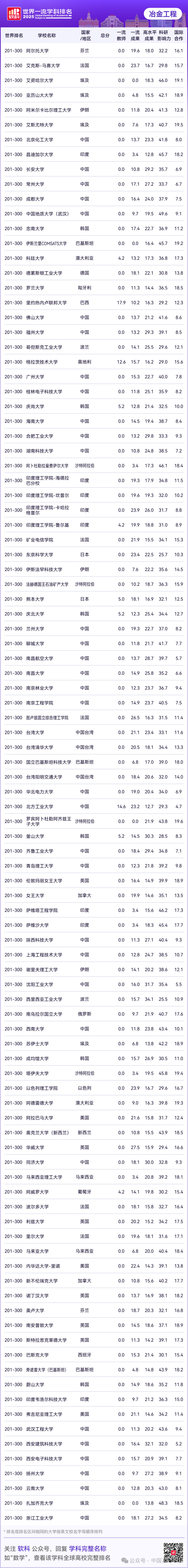 11月18日,软科发布了2025世界一流学科排名,其中包含冶金工程学科。