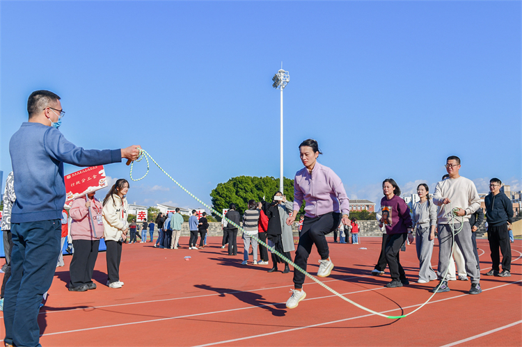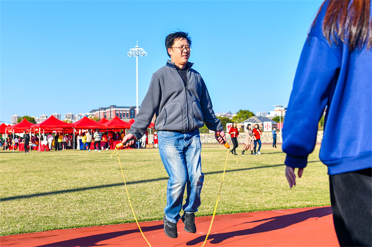 1月3日下午,福建师范大学协和学院举办“山水有梦 协和有情”2024年教职工迎新年趣味运动会,近400名教职工齐聚协和田径场,在欢声笑语中喜迎新年,丰富多彩的趣味项目让全院教职工感受浓厚的新年气氛。