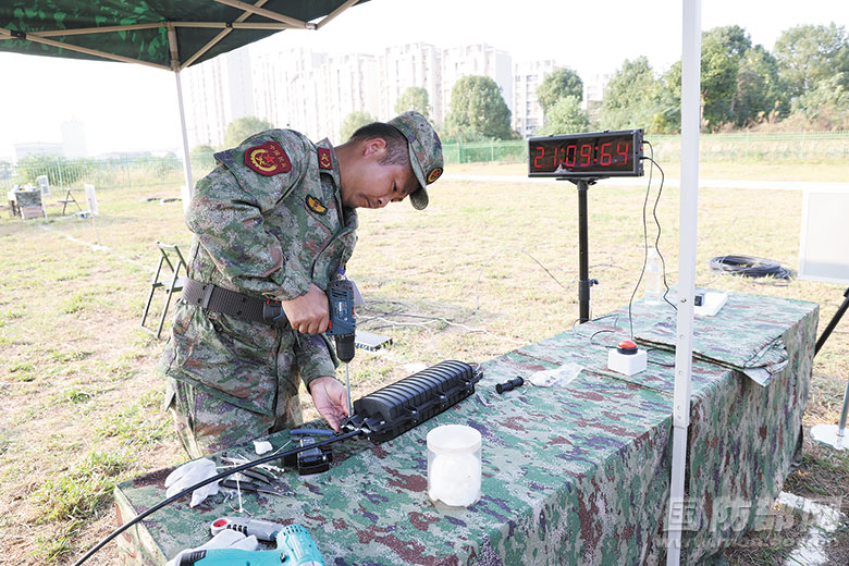 “熔接光纤断点,同时启动代通线路……”10月初,安徽省合肥警备区组织民兵分队参加某部通信链路抢修代通行动演练。民兵、对口支援保障部队、地方专业力量三方在同一训练场练指挥、练协同、练保障,聚力攻关无线链路、光纤通信、盲区信号加强等重难点课目。
