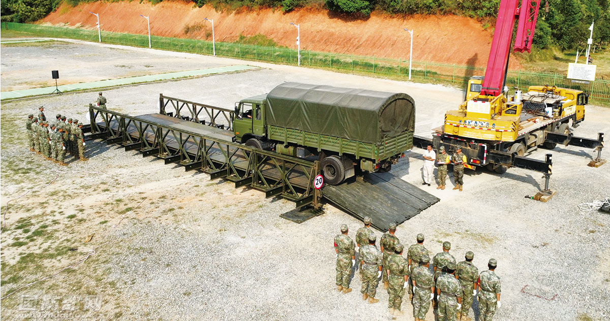 “轰——”高大的起重吊车平稳启动,缓缓吊起一座几十吨重的钢架桥。随后,在民兵骨干的指挥引导下,桥梁精准落到预定地点,满载物资的运输车有序通过。前不久,湖南省怀化军分区组织以高速公路被毁为背景的民兵道路抢修协同演练,检验民兵战斗力,达到预期效果。