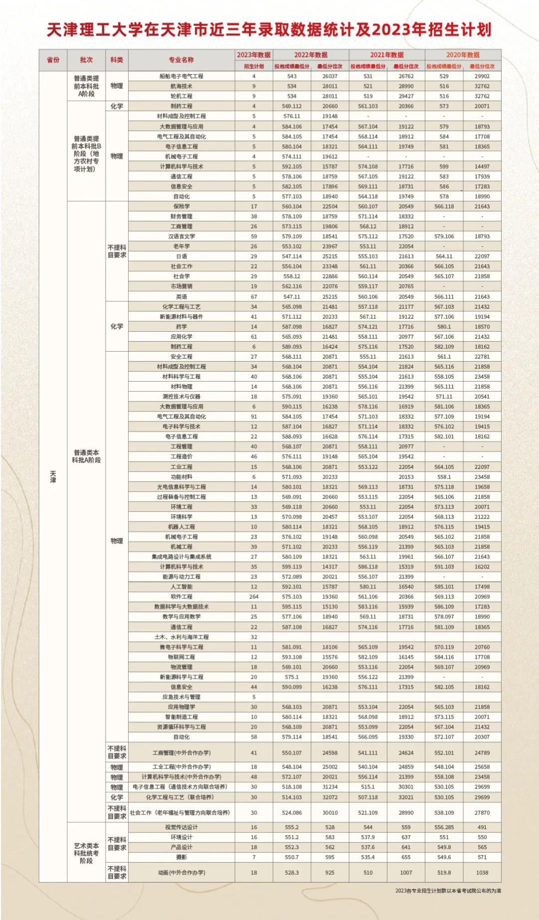 二、2023天津理工大学录取分数线【全国】 天津理工大学2023年录取进度汇总表 说明: