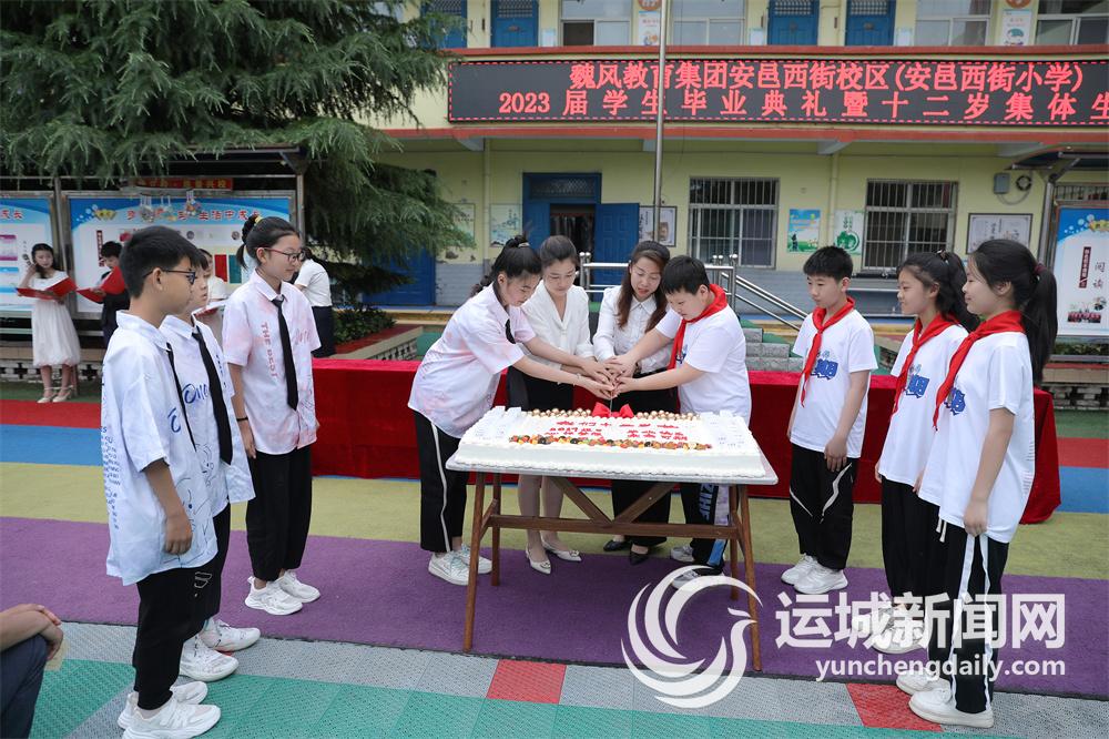 盐湖区魏风小学安邑西街校区举行学生毕业典礼(资料照片)。
