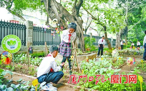 思明区教育局昨天说,槟榔小学这块种了十年的菜地,已经成为思明区的一个德育品牌——通过探索劳动实践基地多元化、实用化、生活化、项目化的特性,将劳动教育课程与德智体美相融合。