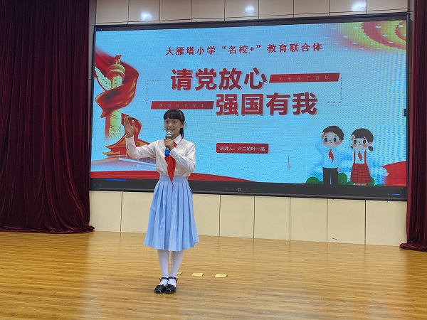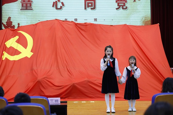 学校以庆祝中国共产党成立100周年为契机,通过组织开展“永远跟党走”主题开学典礼、“红领巾心向党”艺术汇演、“听党的话 跟党走 争做新时代好少年”主题队日、“学习回信精神 传承红色基因”主题教育、“党史微讲堂”“童诗心语歌百年”征文、“探寻红色印记 传承红色基因”研学旅行等,以党史大家讲、红歌大家唱、英雄故事我来颂、童言童语感党恩等形式,引导学生了解党恢弘发展历程,感受党带给我们的幸福生活,激发爱党爱国情怀,激励学生从小立志、成才报国。