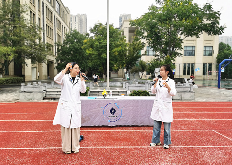 此后,合肥市科技馆老师们带来的科学小表演《看不见的推手》,带领师生探寻大气压强的奥秘,生动有趣的实验与游戏让同学们近距离感受科学魅力。接着,科技馆老师们带来的科普剧《聪明的饮水鸟》在报告厅热烈展开,与此同时,架空层化身为“未来城市沙盘”——校科技社团展示着各种各样的科技活动;移步弘远楼,3D打印、AI人工智能、机器人、小小发明家吸引着学生的眼球;达德楼则涌动趣味浪潮,编程迷宫中闪烁的LED矩阵墙吸引学生破解指令;舞蹈房陈列着各种各样的航模复刻群,最终抵达体育馆。仰望无人机编队以“星链织网”造型划破穹顶——这条贯穿四维空间的链,让航天工程、智能算法与基础科学在60分钟内触手可及。