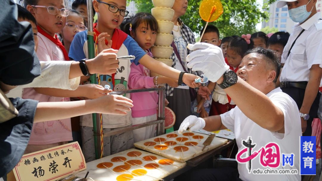 步入“非遗”主题区域,三年级的12个特色摊位前人头攒动。当这些文化符号,穿越时间与你相见;当岁月的故事,诠释着展板上可触摸的文明记忆。在艺术与文化的浪漫中,一切都被孩子们灵巧的双手点亮。