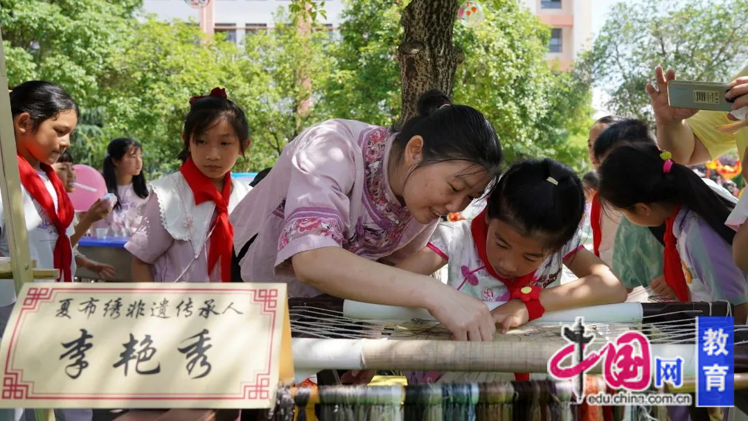 在脸谱绘制摊位前,孩子们结合自己的阅读经验,精心绘制了一张张历史人物脸谱:忠勇正义的关羽,刚直不阿的张飞,奸诈多疑的曹操……在漆扇绘制摊位上,漆色如泼墨般酣畅,素扇随着水的流动晕染出了美丽的图案;在编竹艺摊位旁,细长的篾条在指间翻飞,慢慢地,参差的经纬开始有了模样;在刺绣体验区,同学们将不同的颜色进行混搭。在这个特别的六一,他们用彩色丝线,绣制出了属于自己的彩色梦。另一边,同学们手中的拓印工具,又仿佛打开时间宝盒的钥匙,他们有的衣袂绽开了花,有的领口汇成了鲜青色的溪,彩虹在棉布间跳起自由的舞。