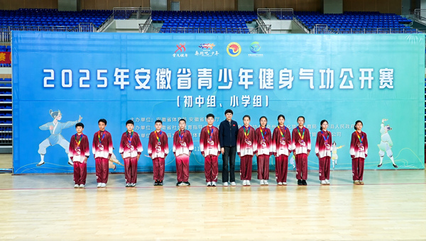 赛场上,来自肥东县实验小学的12名小选手,将五禽戏的经典动作与少年儿童的活泼朝气完美融合,一招一式既展现了虎之威猛、鹿之安舒、熊之沉稳、猿之灵巧、鸟之轻捷的神韵,又充满了少年的活力与灵动。他们的表演不仅动作规范、节奏流畅,更难得的是眼神中透出的专注与自信,将传统养生功法的精气神展现得淋漓尽致,赢得了评委和现场观众的一致好评。