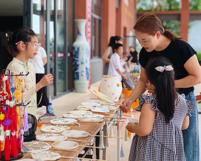 活动现场,学校精心布置的文化成果展示区吸引了众多家长驻足。蚕桑主题的特色展品、科创社团的奇思妙想、书画作品的灵动笔触,都是孩子们成长的生动注脚,彰显了学校“五育并举”的丰硕成果。