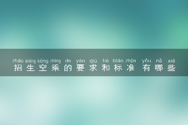 2、空乘专业要求:热爱祖国、遵纪守法、举止端庄,有志于从事航空服务事业,具有较强的服务意识和良好的道德品质;