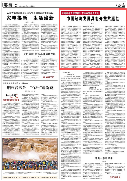 中国经济始终保持战略定力,展现出强大韧性和活力;中国这么大的经济体量,能够保持长期稳定发展,其背后蕴藏着深刻的内在逻辑;中国经济加快转型升级,将为世界各国带来前所未有的重大机遇……9月30日至10月7日,《人民日报》连续推出8篇“习近平经济思想指引下的中国经济专论”系列“钟才文”文章,深度解读中国经济高质量发展的底气与信心。