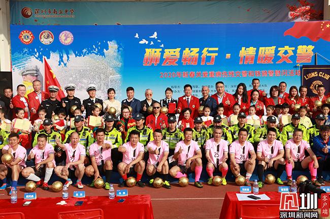 “2020年新春关爱慰问重病伤残交警辅警活动”由深圳市残联、市关爱办指导,深圳狮子会、南山交警大队主办。现场为50位重病伤残交警及160位铁骑警送上最真挚和温暖的新春慰问,并举办了文艺慰问表演和足球友谊赛。