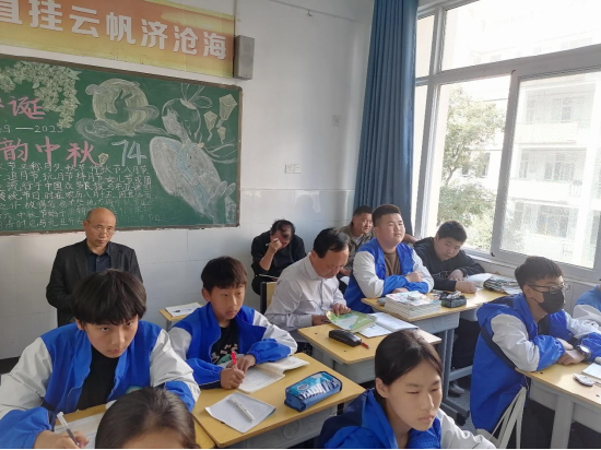 10月26日,来安县汊河中学开展了八年级数学教研活动。图为26日上午第三节课,汊河中学党支部书记、校长孙殿斌(后排右一),党支部副书记张永海、章克山,副校长张道平,安全办主任吕殿和,学校数理组教师刘永华……在八(3)班教室听夏玉来老师数学公开课。