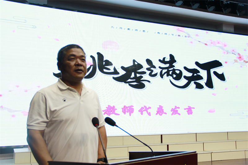 在教师节来临之际,启东市汇龙中学党委书记、校长徐辉向全体教师致以节日的问候,向以蔡水洪教授为代表的爱心企业家致以崇高的敬意。徐校长表示,企业家们的爱心助教,表达了对汇龙中学的真情和厚爱,更彰显了“尊师重教,情系桑梓,回馈社会”的家国情怀。他要求,所有老师要以对党和人民教育事业的无限忠诚、对汇中的无比热爱、对立德树人的无悔坚守,齐心协力向前看,撸起袖子加油干,在建设高品质汇中的新征程上再出发、再起航,再奋进、再辉煌!