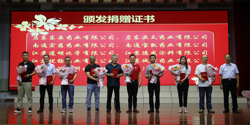 丹心一片育新苗,赞歌千曲颂师恩。2023年9月8号晚上,启东市汇龙中学全体教师欢聚一堂,在学校音乐厅共同庆祝第39个教师节,并表彰2022—2023学年度的先进集体和个人。参加庆祝大会的还有启东东岳药业有限公司、启东亚太药业有限公司、南通宏慈药业有限公司、南通宝凯药业有限公司、江苏道明化学有限公司、江苏德威涂料有限公司、江苏优扬药业有限公司、江苏诚信药业有限公司、派尔科化工材料(启东)有限公司等爱心企业代表。