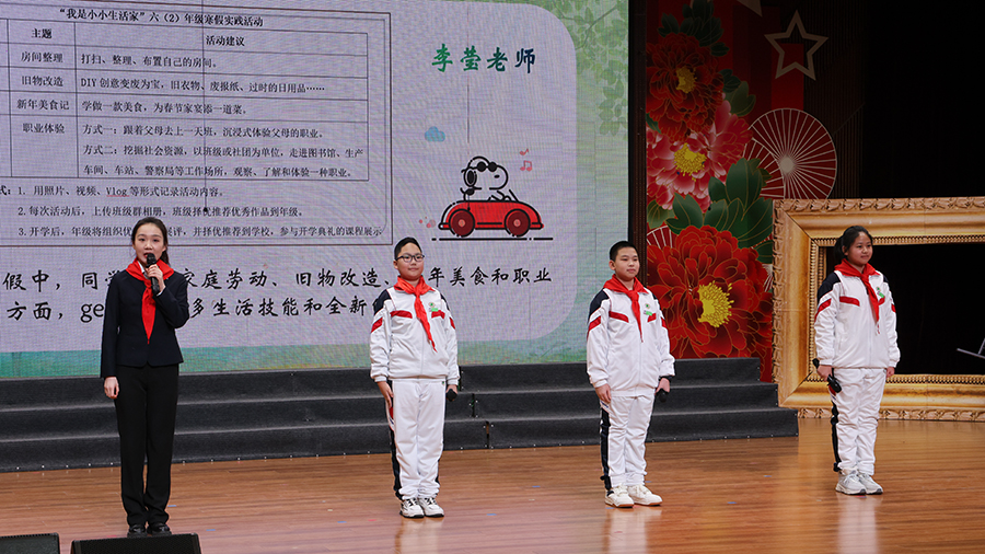 各年级假期布置了德育实践作业,鼓励同学们积极体验开拓眼界,积极思辨缓释心灵。假期生活展示板块中六(1)年级的小龙娃带来了丰富的成长展示,寒假里他们监测体质、体验年俗、走进社区……可爱龙娃们讲述成长故事,用歌声与舞蹈表达收获的喜悦,他们一起昂首阔步走进新学期。