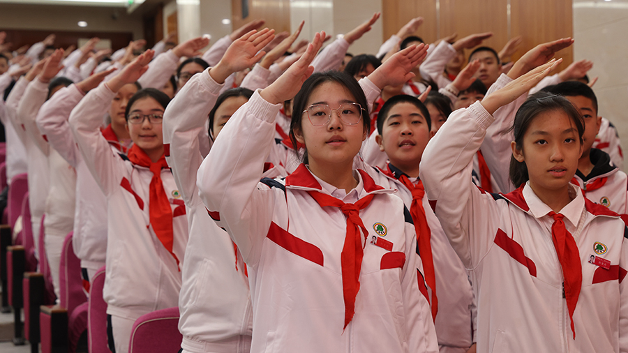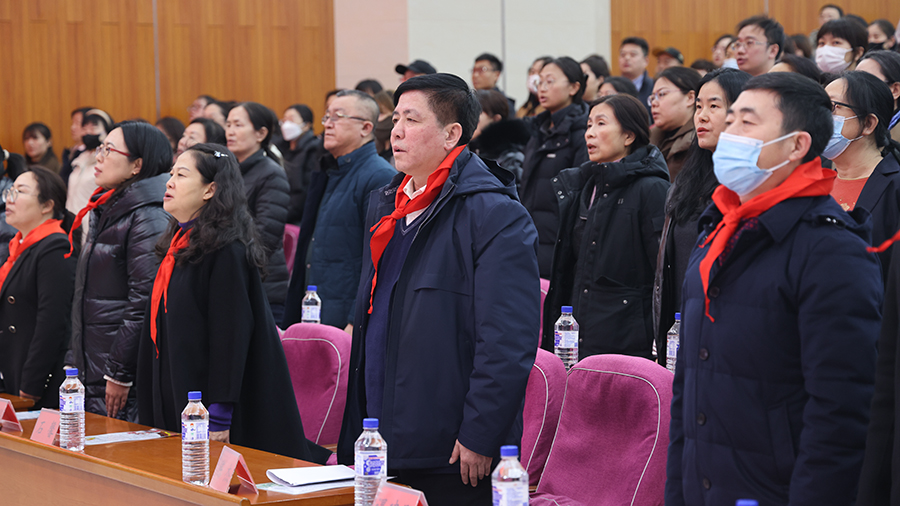 龙腾盛世,不忘来时路;高唱国歌,澎湃家国少年情。全体师生庄严肃立向国旗敬礼,激情高昂共同唱响国歌,家国情怀在歌声中回荡。