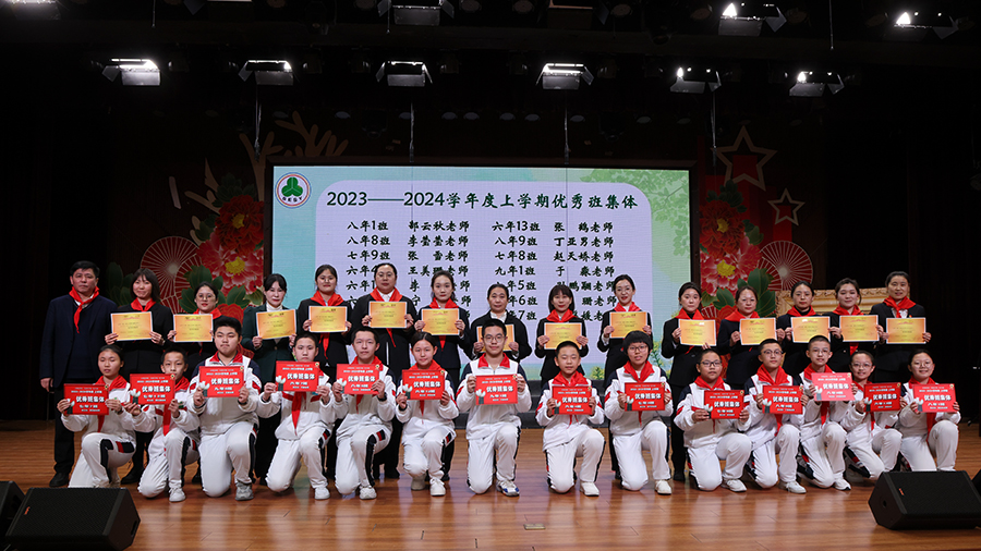 各中队、各班级共同践行“诚实、勇敢、活泼、团结”的少先队作风。同学们生龙活虎争做优秀担当,拼搏进取共筑班级荣光。2023—2024学年度上学期涌现了一批优秀班集体,陈杰校长为14个优秀班集体颁奖。