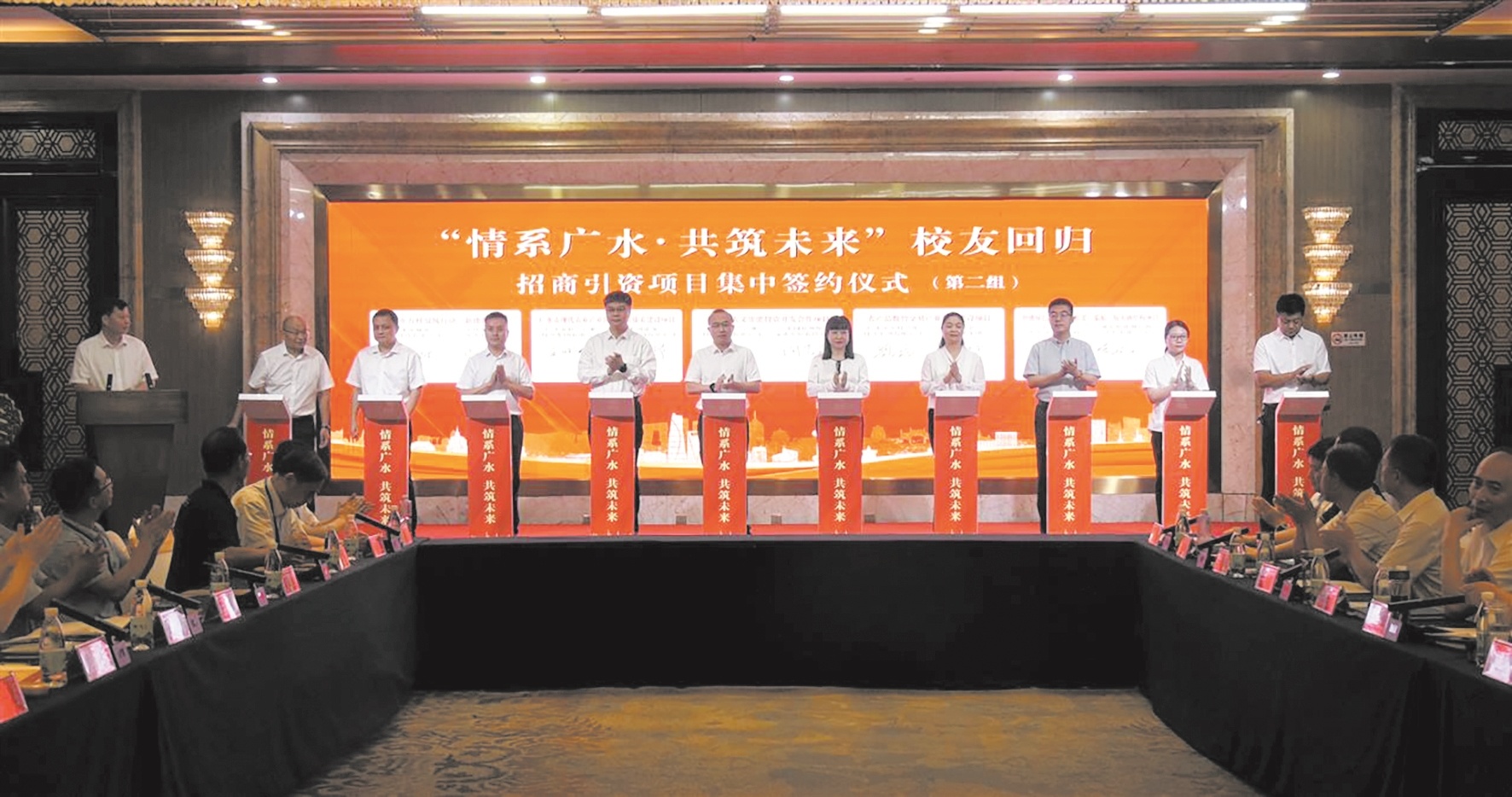 8月15-16日,湖北广水举行“情系广水·共筑未来”校友回归活动,首批56位从广水走出的校友在政府的邀约下回到故乡,企业签约的同时,25位校友受聘为该市科技顾问。在16日举行的集中签约活动中,3组共15个项目签约总金额近60亿元。