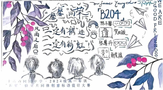 训练之余,我们开展了“温馨寝室共同体创意标语设计大赛”。素不相识的室友们,通过共同设计寝室口号,绘制创意图画,让朴素的寝室更加温馨团结。为争取更高的内务分数,同学们还互相参考优秀寝室的做法,取长补短,学会收纳,生活自理能力有了长足进步。