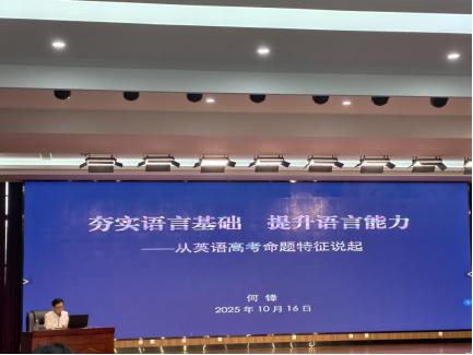 下午的教学反思与改课设想交流中,三位授课教师分享了AI辅助教学背后的设计理念与改进方向。江苏省教科院教研室何锋老师带来的专家报告《夯实语言基础,提升语言能力——从高考试卷特征说起》,进一步从高考命题趋势出发,为AI赋能下的复习教学提供了理论支撑与实践指导。