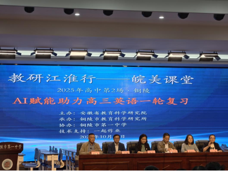 为深入探索AI技术与高中英语教学的深度融合,推动课堂教学改革与教学质量提升,2025年10月16日,安徽省教育科学研究院在铜陵市第一中学举办了“教研江淮行——皖美课堂”高中英语学科教学展示暨AI赋能高三英语复习实践活动。安庆第一中学积极响应,派出骨干教师代表参与本次研讨,共同聚焦AI辅助高三英语一轮复习的实践路径与创新模式。